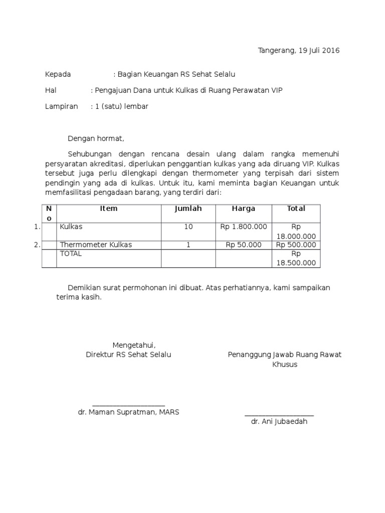 Contoh Surat Pengajuan Dana Operasional Kantor - Kumpulan Surat …