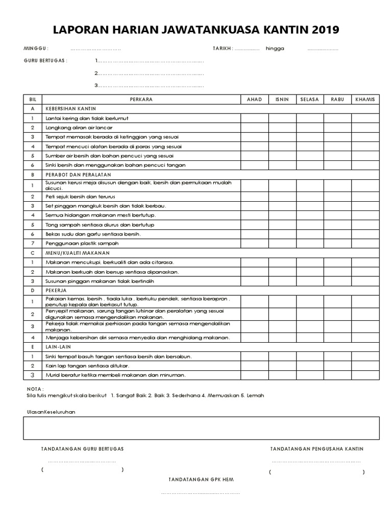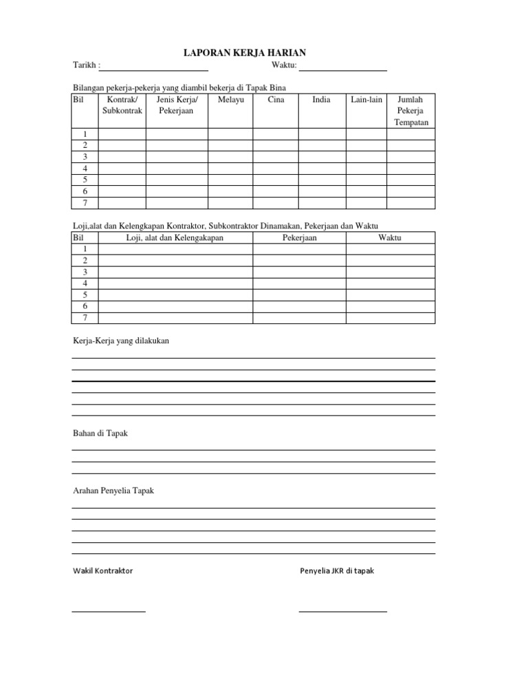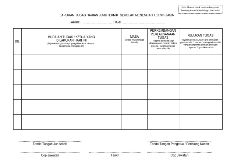 Contoh Borang Laporan Tugasan Harian