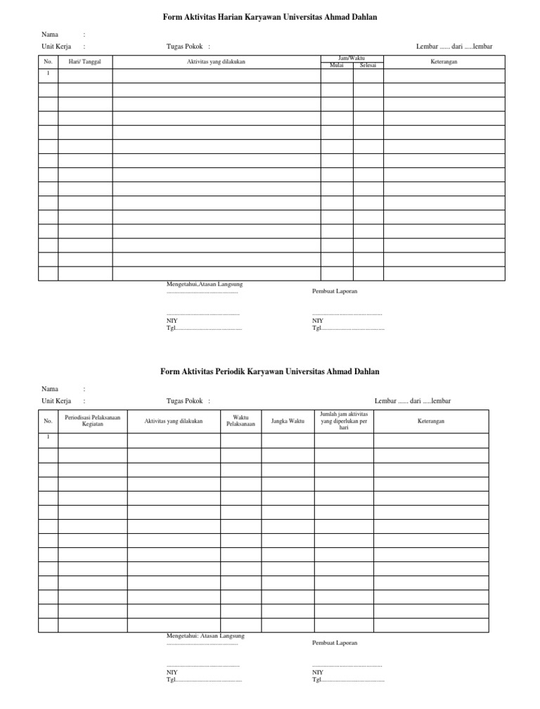 DOC) Form Aktivitas Harian Karyawan Universitas Ahmad Dahlan Nama …