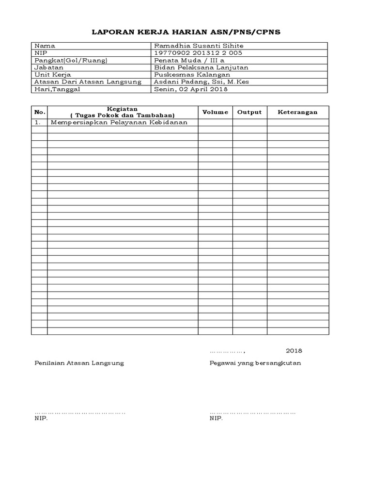 Contoh Laporan Capaian Kinerja Harian Pegawai Negeri Sipil …