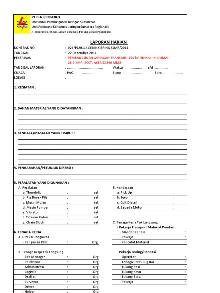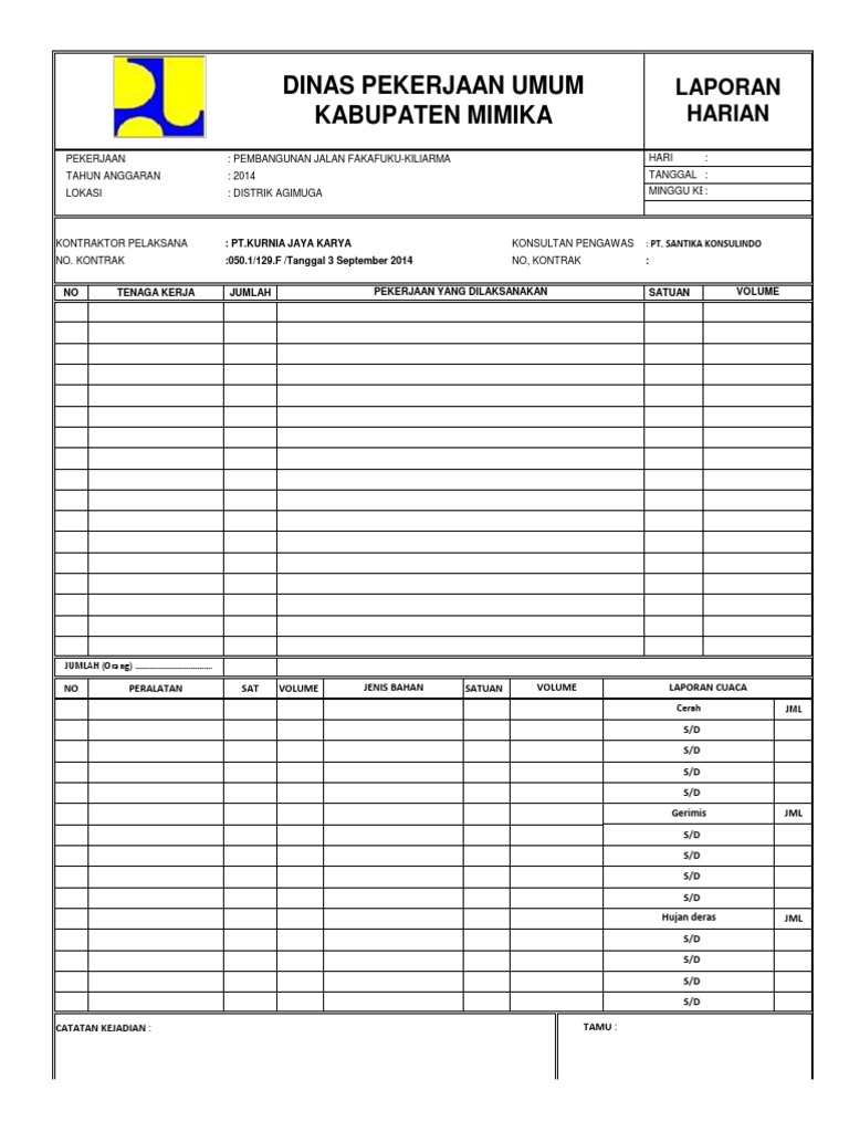 Contoh Format Laporan Kerja Harian - Seputar Laporan
