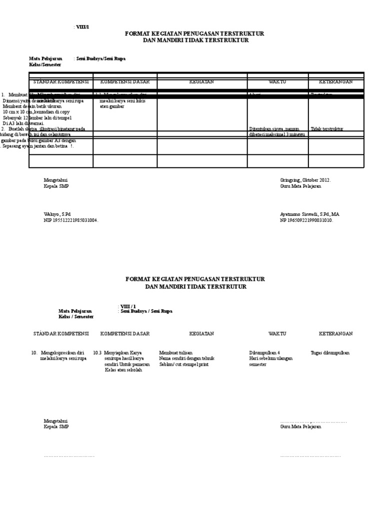 Contoh Format Tugas Mandiri Terstruktur dan Tugas Mandiri Tidak Terstruktur - BERKAS GURU 25