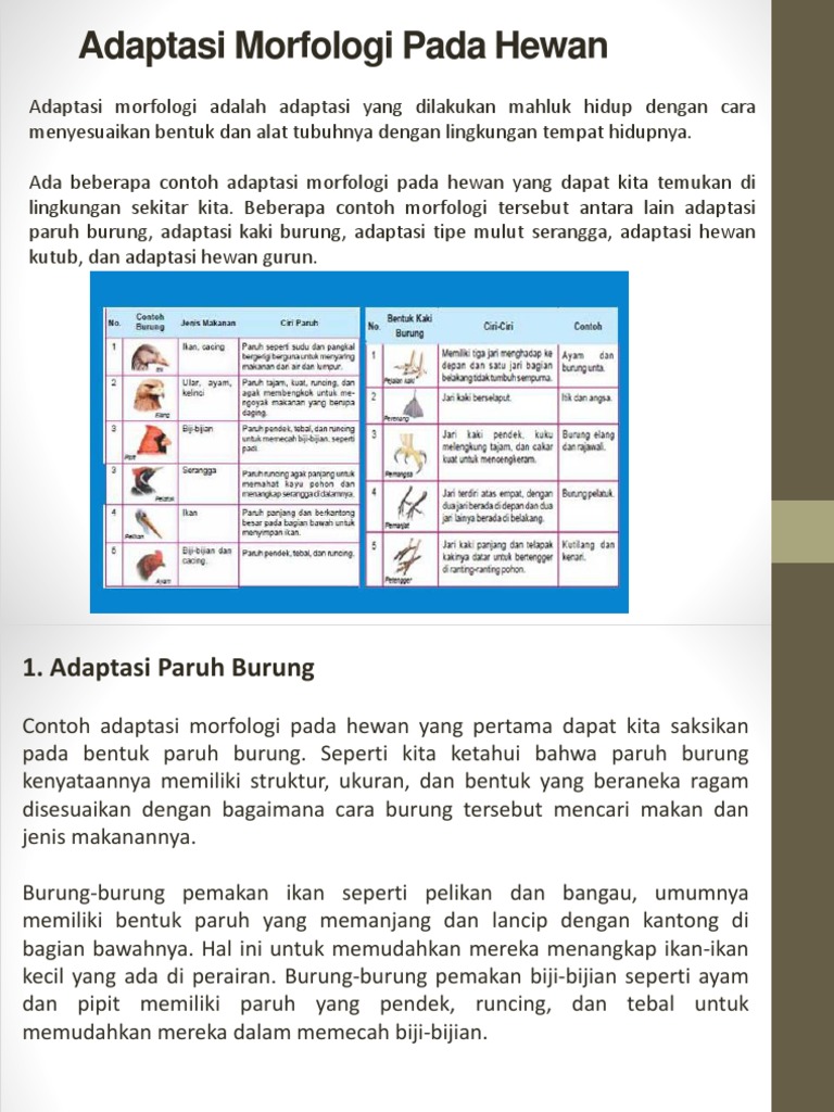 Contoh Adaptasi Morfologi Pada Hewan - Guratgarut