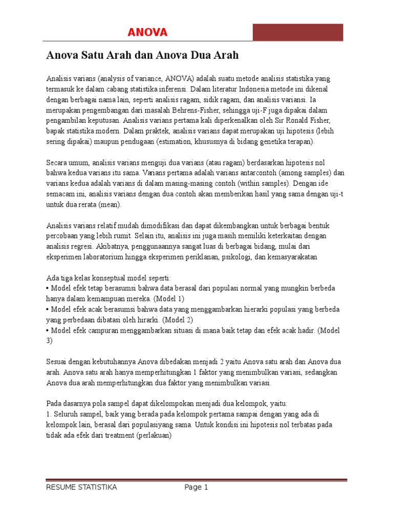 Uji Anova, Teori Satu Arah dan Dua Arah - Globalstatistik Academic