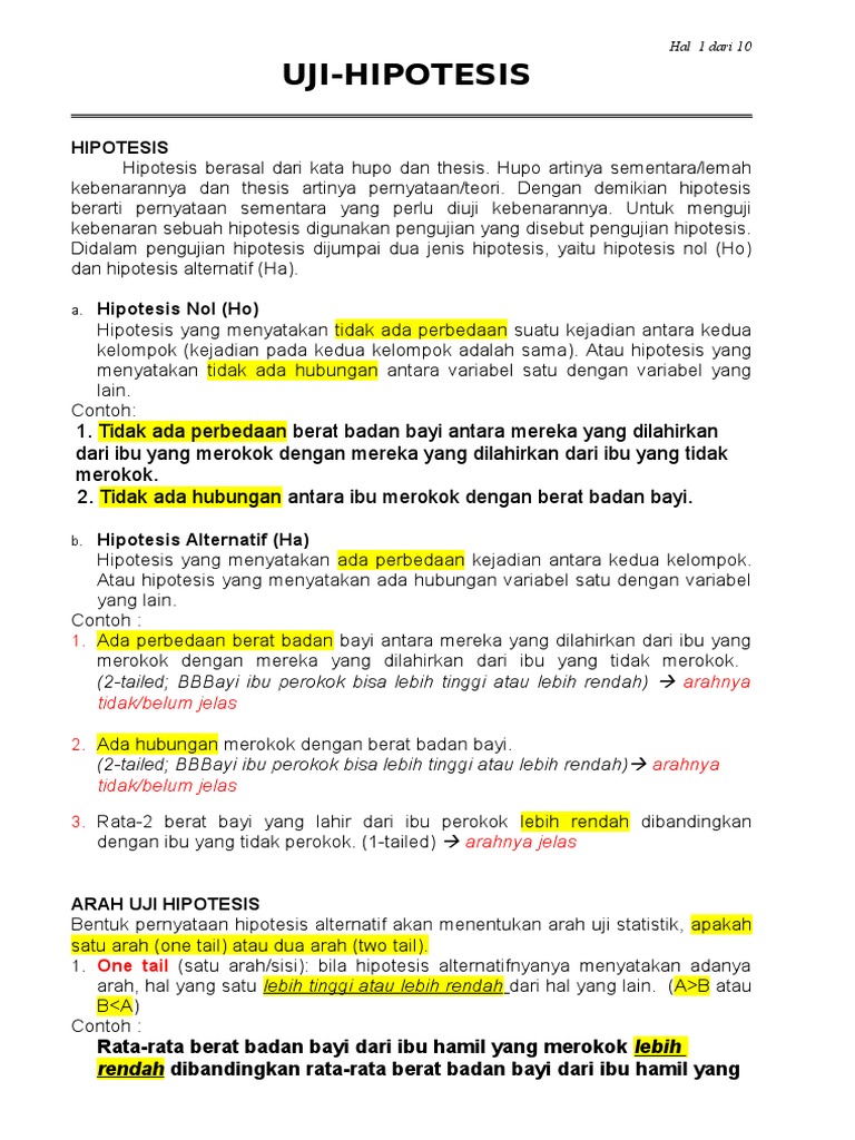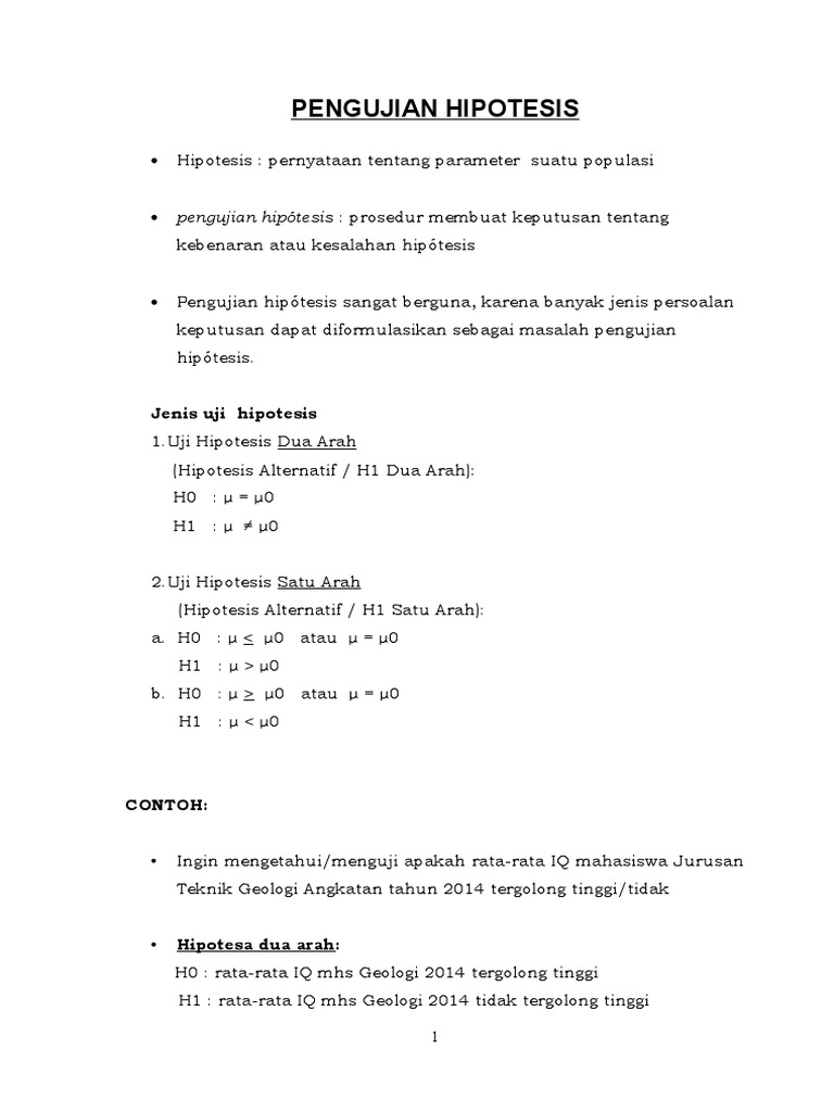 Contoh Hipotesis Satu Arah Dan Dua Arah