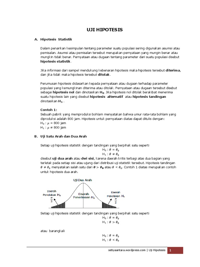 Contoh Soal Uji Hipotesis Satu Arah Dan Dua Arah - Contoh Soal Terbaru
