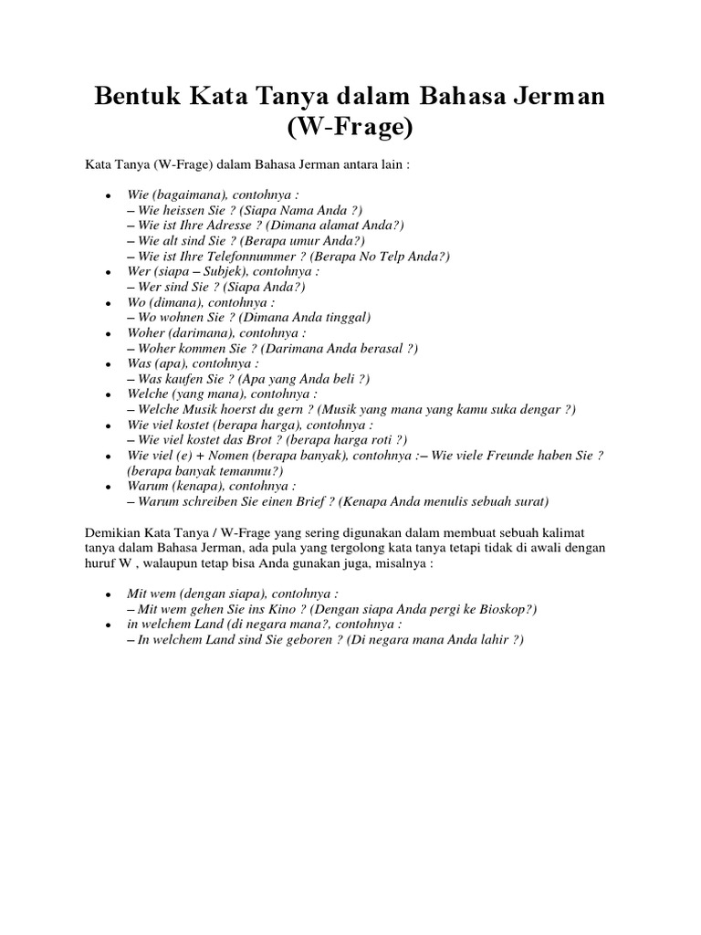 Bentuk Kata Tanya Dalam Bahasa Jerman