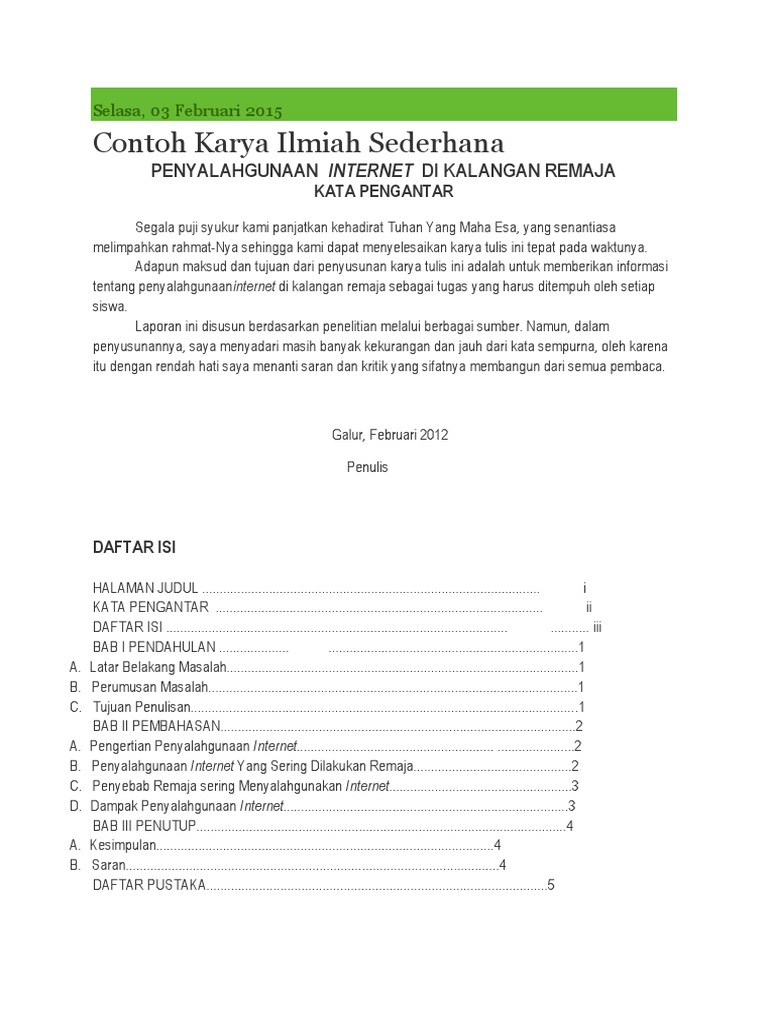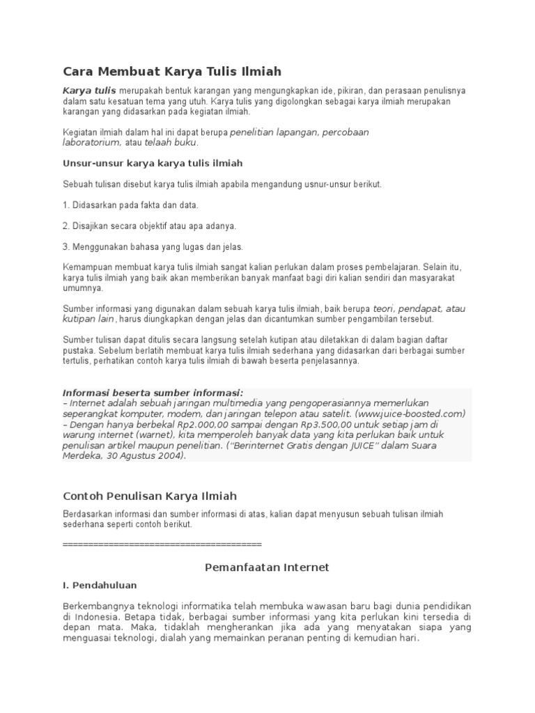 10+ Contoh Karya Tulis Ilmiah Sederhana Bahasa Indonesia Populer +pdf