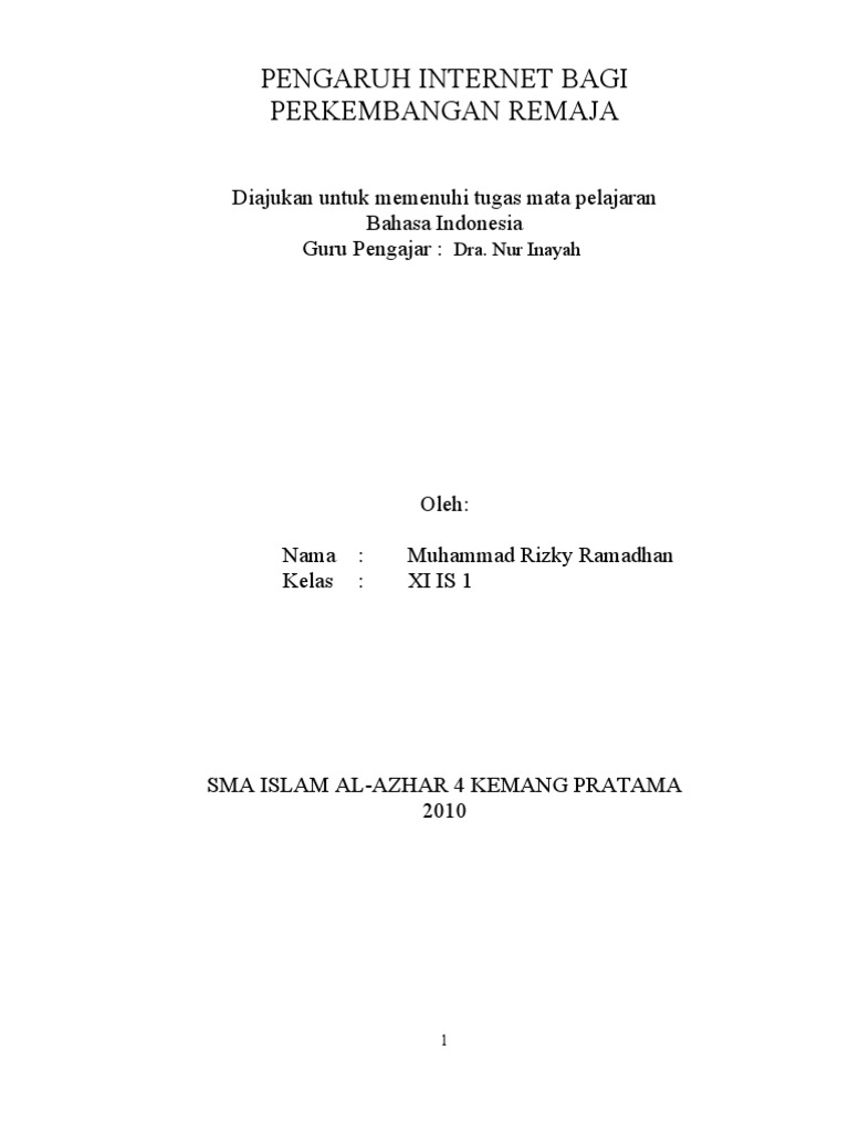 karya tulis - pengaruh internet bagi perkembangan remaja