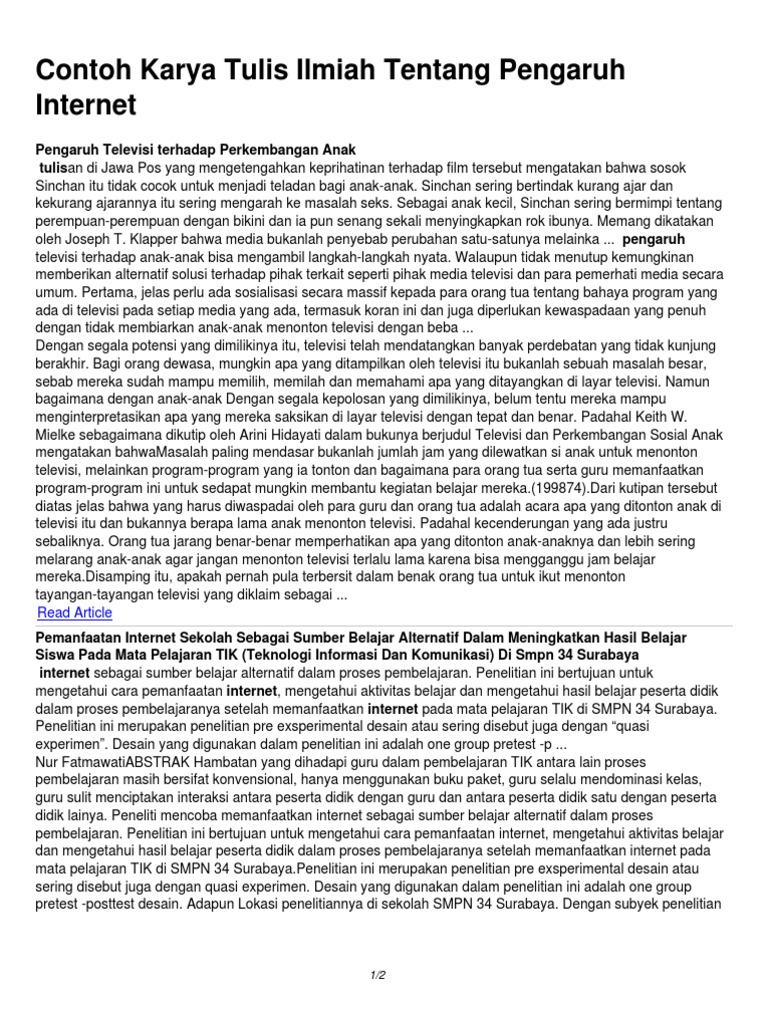 Contoh Karya Tulis Ilmiah Tentang Pengaruh Internet