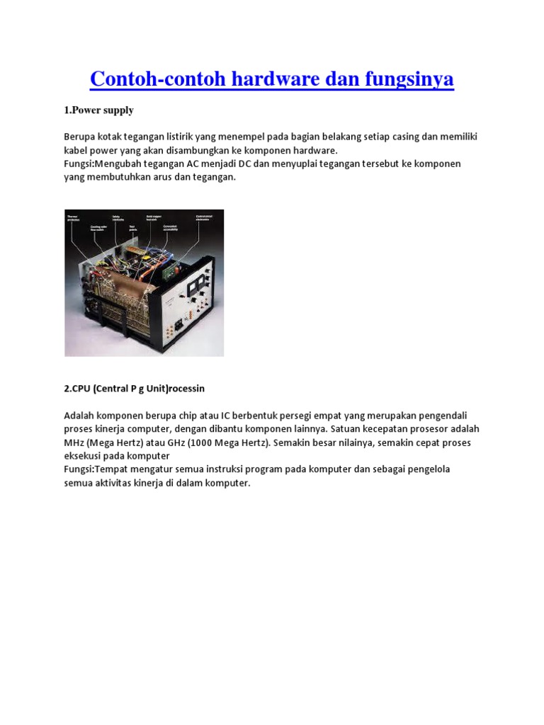 Contoh Hardware Pada Komputer Beserta Fungsinya 1 Power supply …