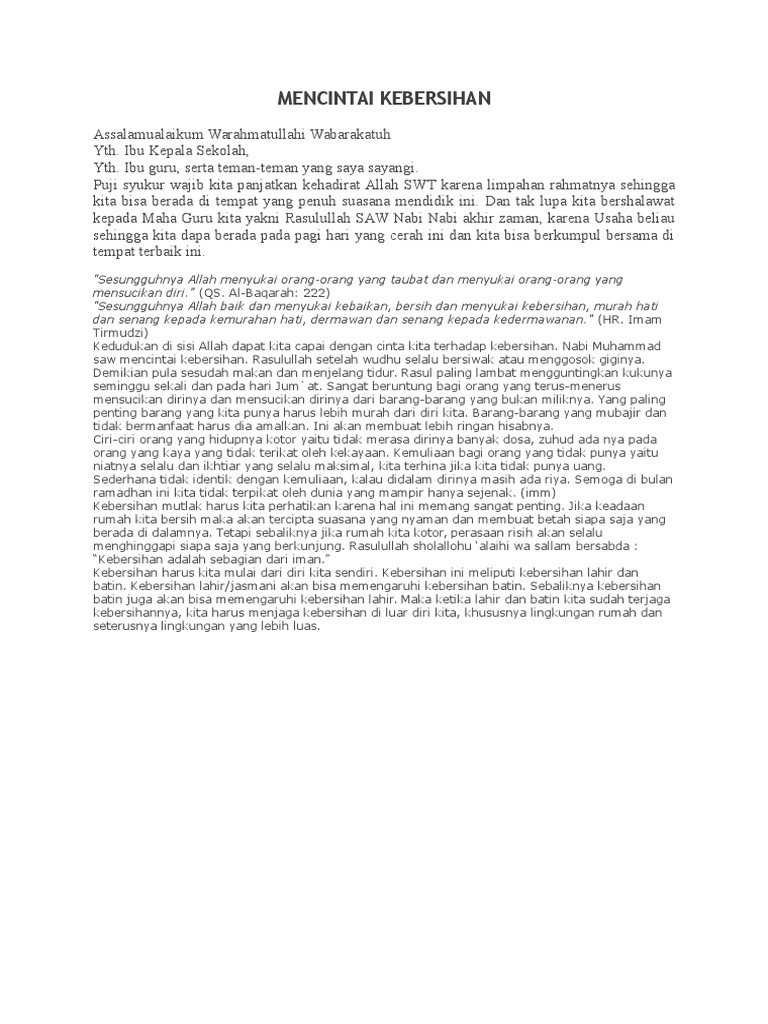 Contoh Pidato Singkat Tentang Kebersihan Sebagian Dari Iman