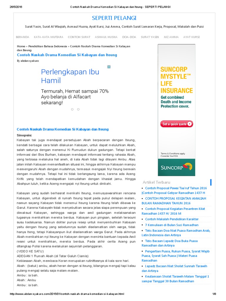 Contoh Naskah Drama Komedian Si Kabayan Dan Iteung - SEPERTI PELANGI
