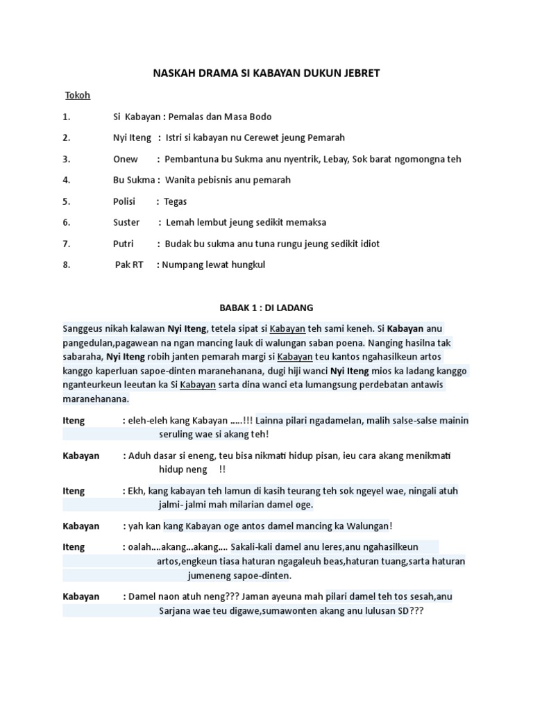 Contoh Naskah Drama Basa Sunda Bahasa Sunda - [DOC Document]
