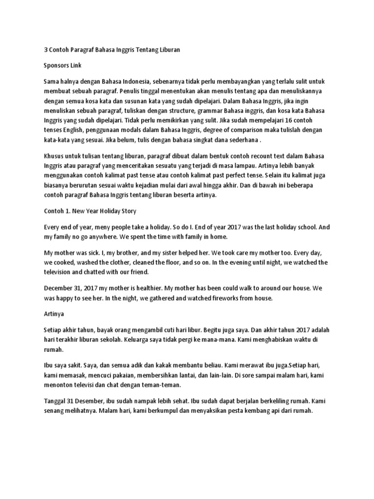 3 Contoh Paragraf Bahasa Inggris Tentang Liburan