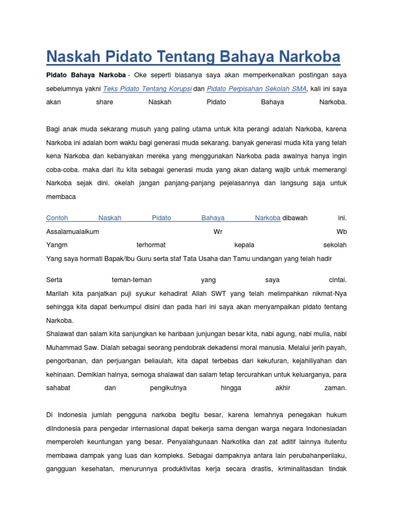 Contoh Teks Pidato Biantara Bahasa Sunda Tentang Bahaya Narkoba