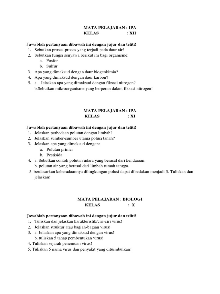 Latihan Soal Xi Ipa Smk