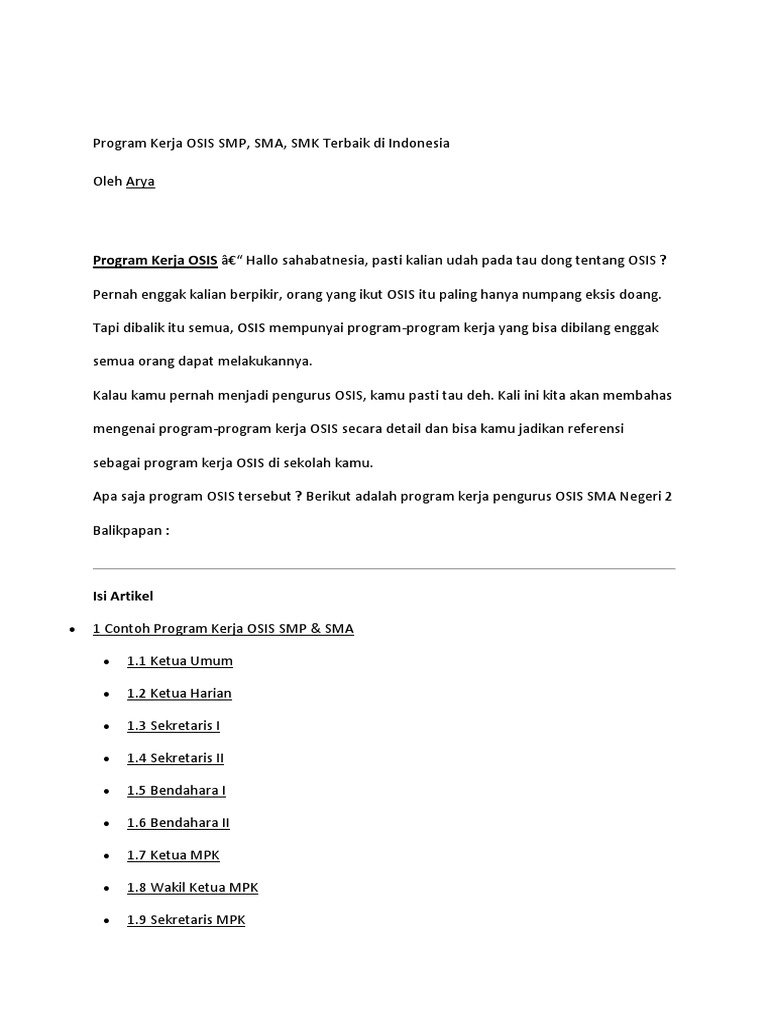 DOC) PROGRAM KERJA OSIS | Ethe Atasoge - Academia.edu