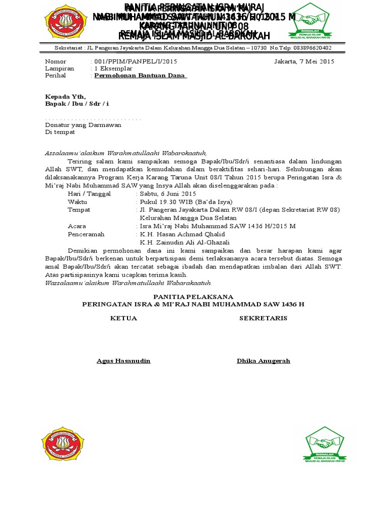 Contoh Proposal Bantuan Dana Isra Mi Raj - Barisan Contoh