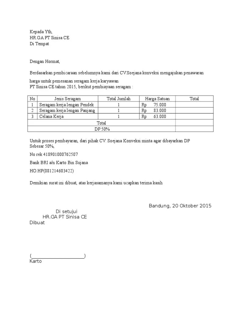 Contoh Surat Penawaran Baju