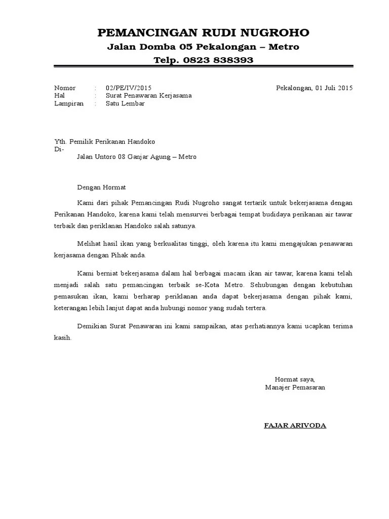 Contoh Surat Penawaran Barang Ke Pabrik
