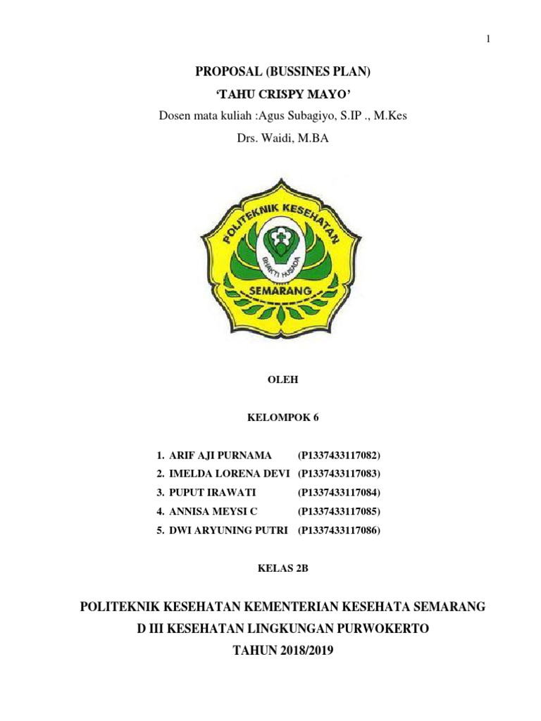 DOC) PROPOSAL PENGAJUAN DANA USAHA TAHU SUSU CRISPY | Manajemen B6 …