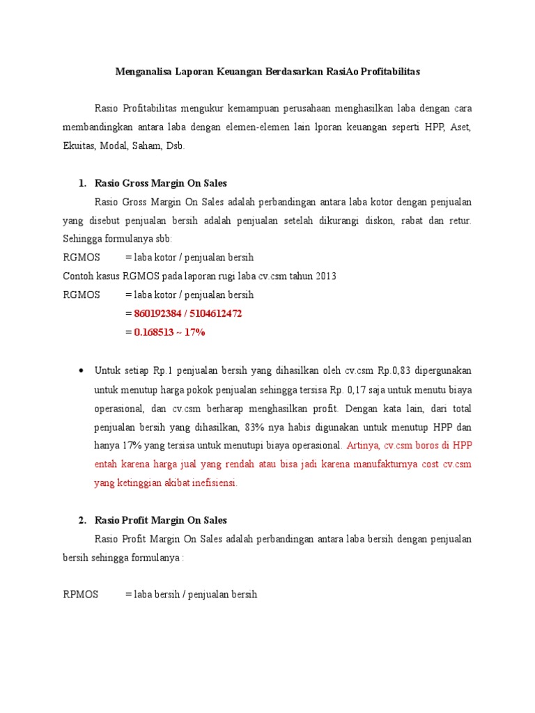 Analisis Rasio Profitabilitas, Contoh Soal Perhitungan Rasio …