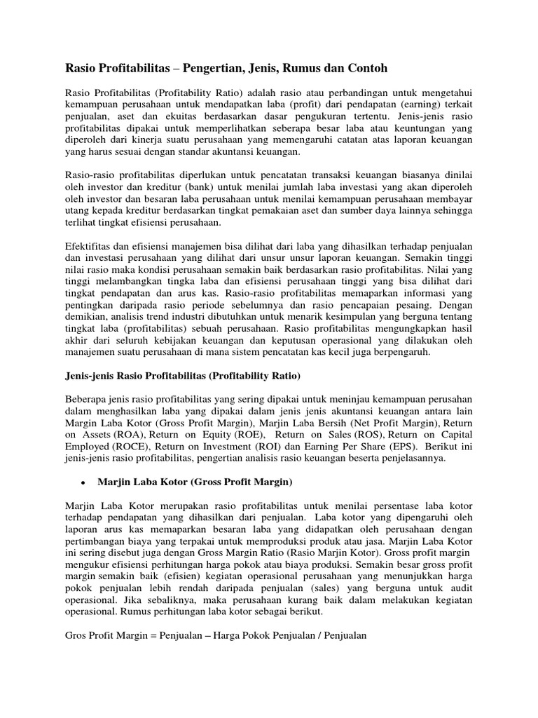Jenis-jenis Rasio Profitabilitas Menurut Para Ahli Terdiri Dari …