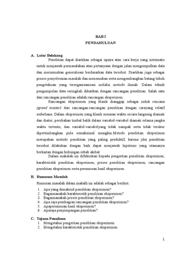 Bab i pendahuluan penelitian eksperimen murni