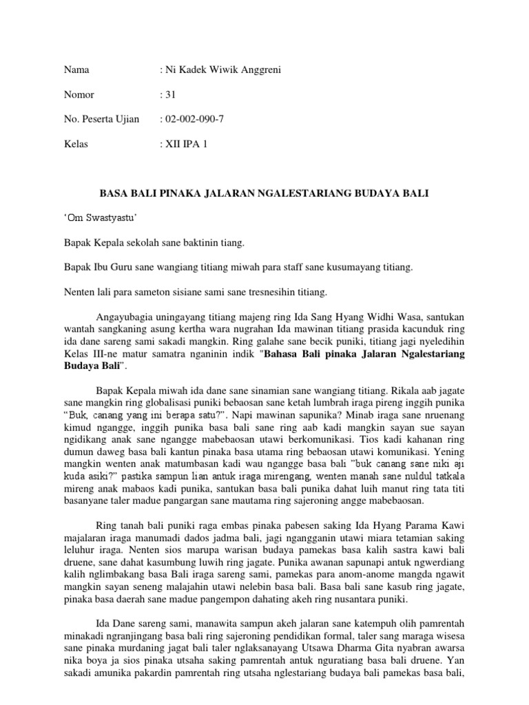 Koleksi gambar terbaru: Contoh Pidato Pendek Bahasa Bali