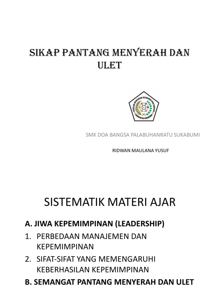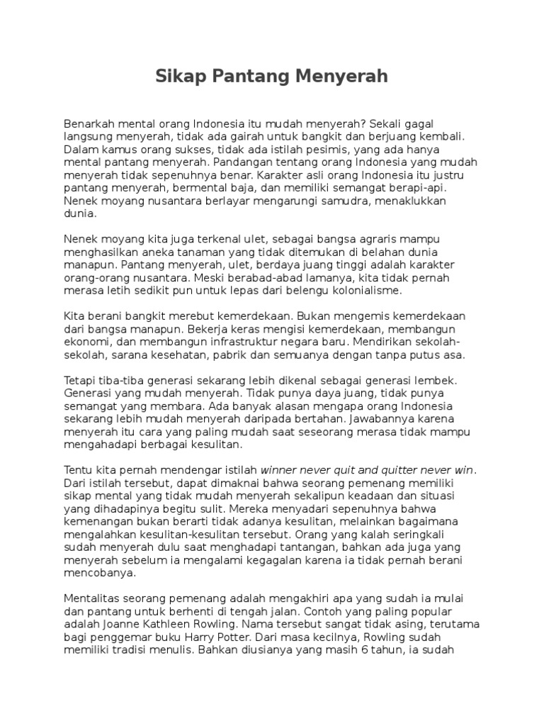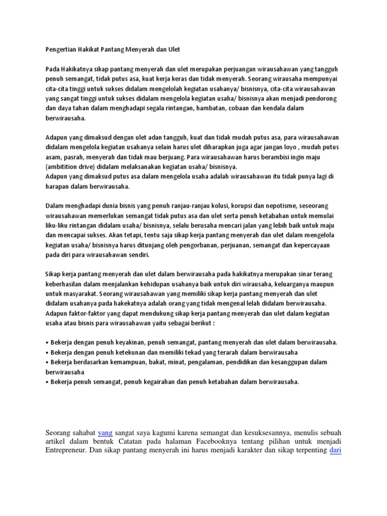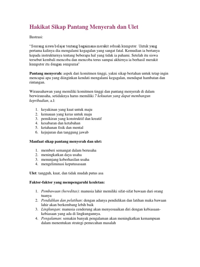 DOC) SIKAP PANTANG MENYERAH DAN ULET | Ari Mulyanto - Academia.edu