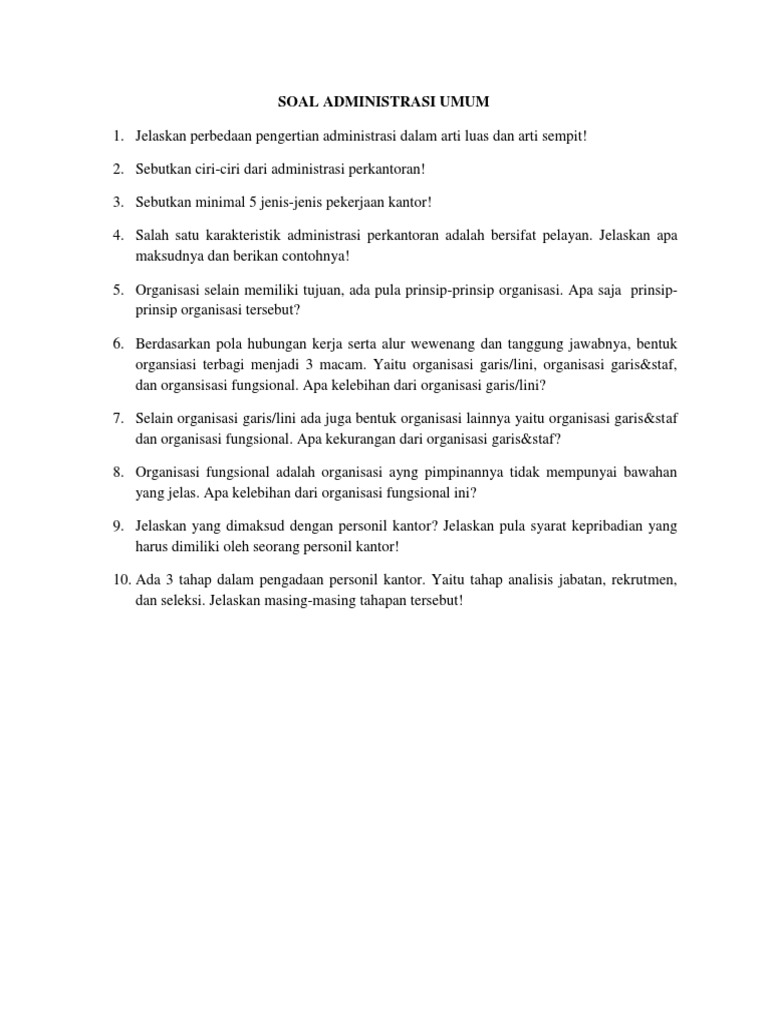 Contoh Soal Administrasi Umum Kelas 10 Dan Jawabannya - Contoh …