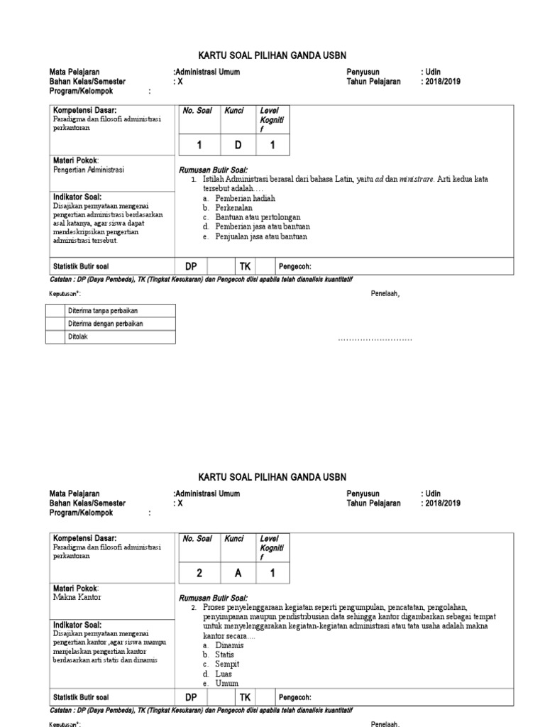 Lengkap - 40+ Contoh Soal USBN Dasar-dasar Administrasi …