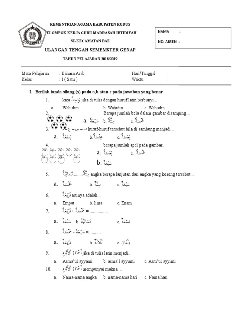 Soal Bahasa Arab Kelas 2 Sd Semester 1 Dan Kunci Jawaban - Guru Galeri