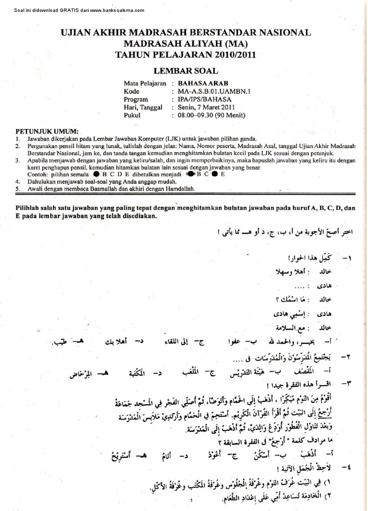 Soal Uambn Bahasa Arab Mts 2018 Dan Kunci Jawabannya – IlmuSosial.id
