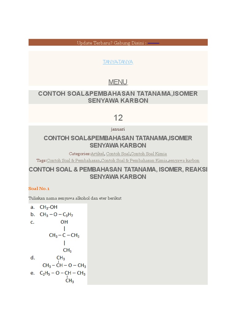 Contoh Soal dan Jawaban - Gugus Fungsi Alkohol, Eter, dan Keton …