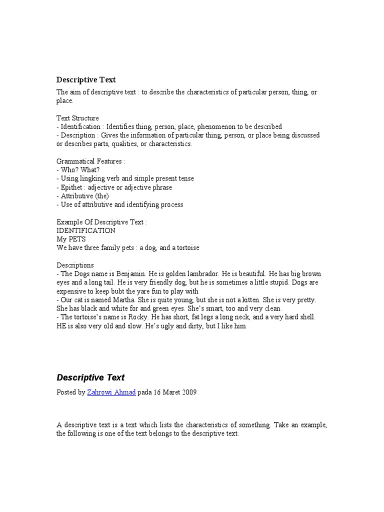 Pengertian Descriptive Text : Generic Structure, Language Features …