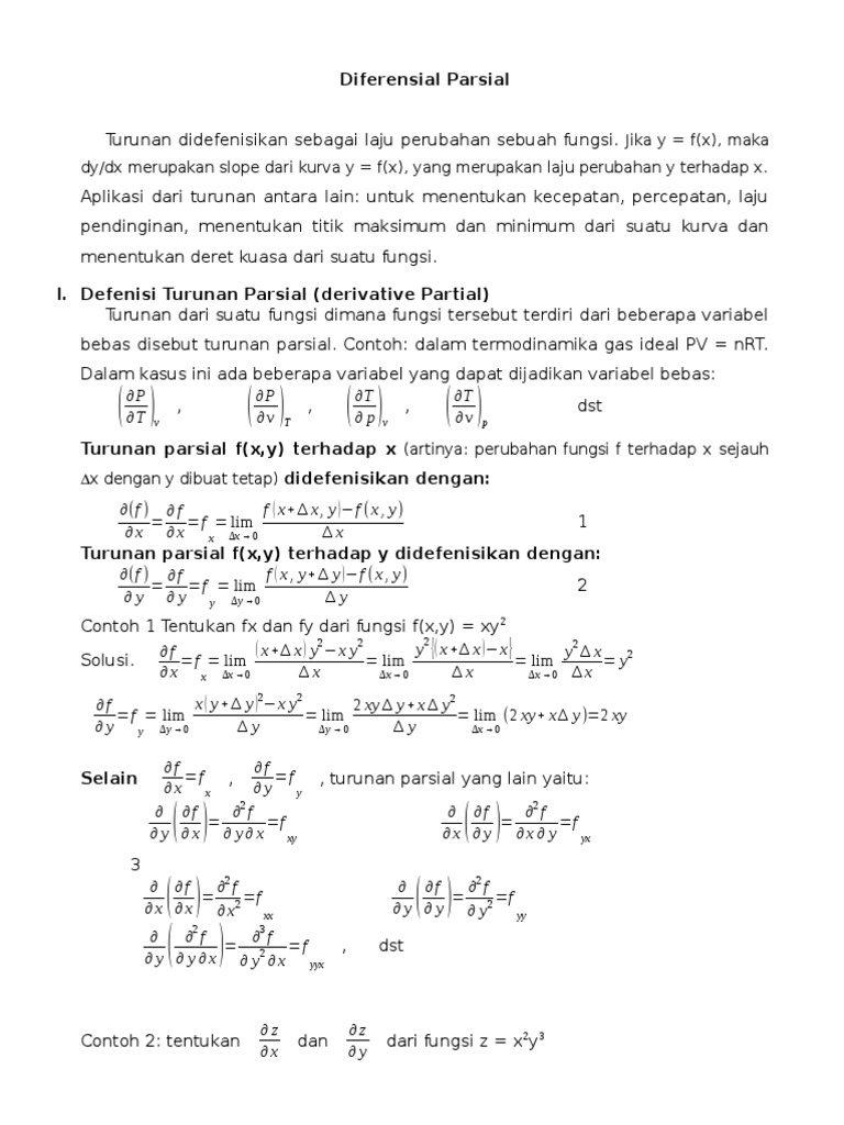 DOC) Makalah Turunan Parsial, Keterdiferensialan dan Turunan Total | Salim Kurni - Academia.edu