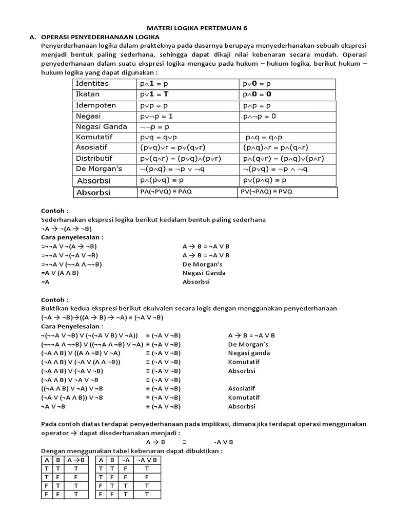 Tabel Ekuivalensi Logika Matematika