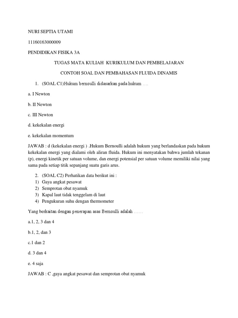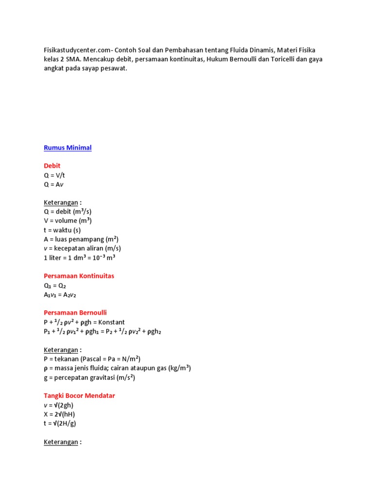 Contoh Soal Dan Pembahasan Tentang Fluida Dinamis