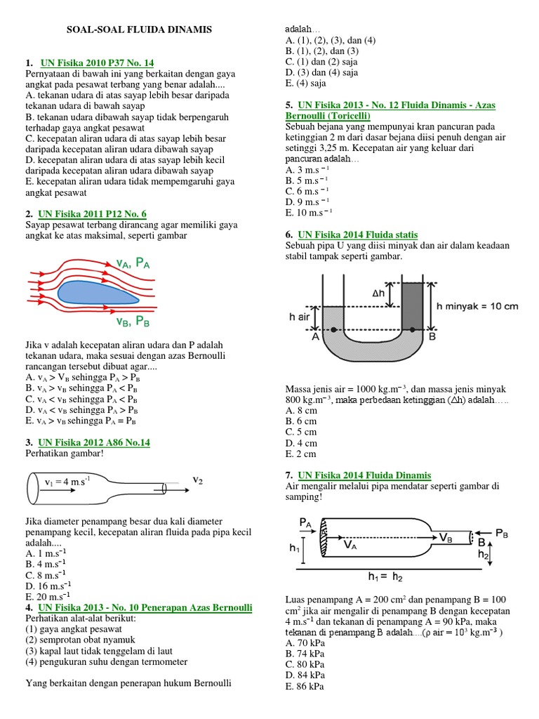 Contoh Soal Hukum Bernoulli pada Fluida Dinamis - UN SMA - Pdf dan Video - lakonfisika.net