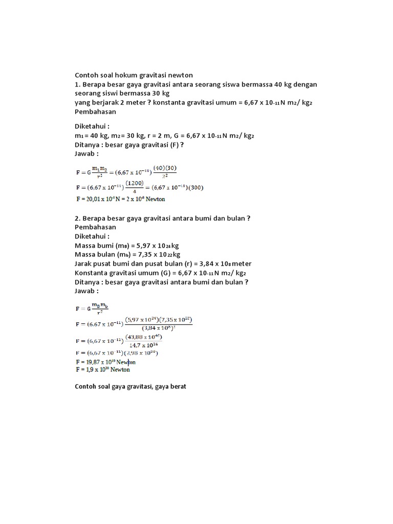 Contoh Soal Hukum Newton Tentang Gravitasi Dan Pembahasannya …