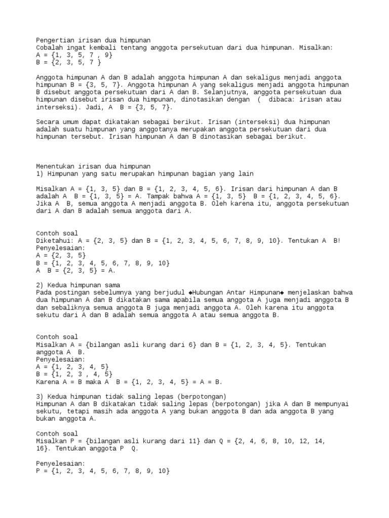 Contoh Soal Himpunan Irisan Dan Gabungan Contoh Tiap - Cute766