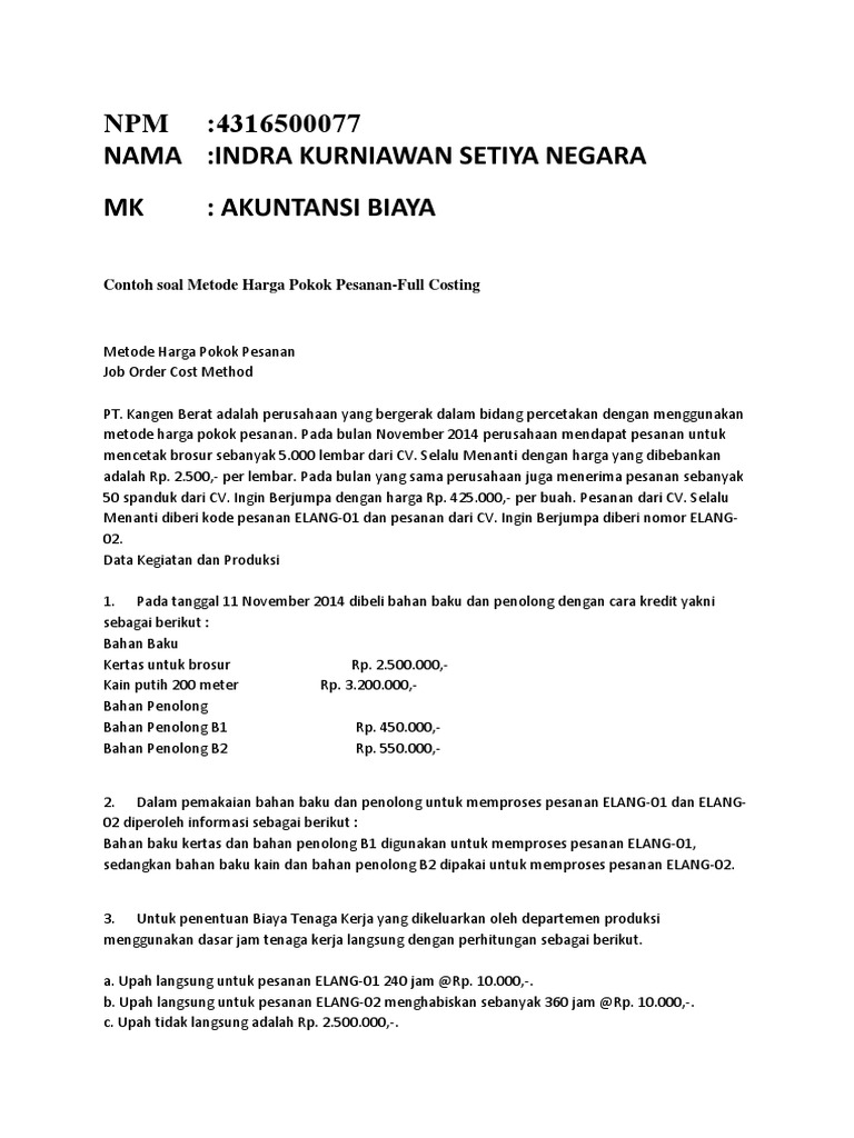 Contoh Soal Metode Harga Pokok Pesanan 2 Departemen - Contoh Soal …