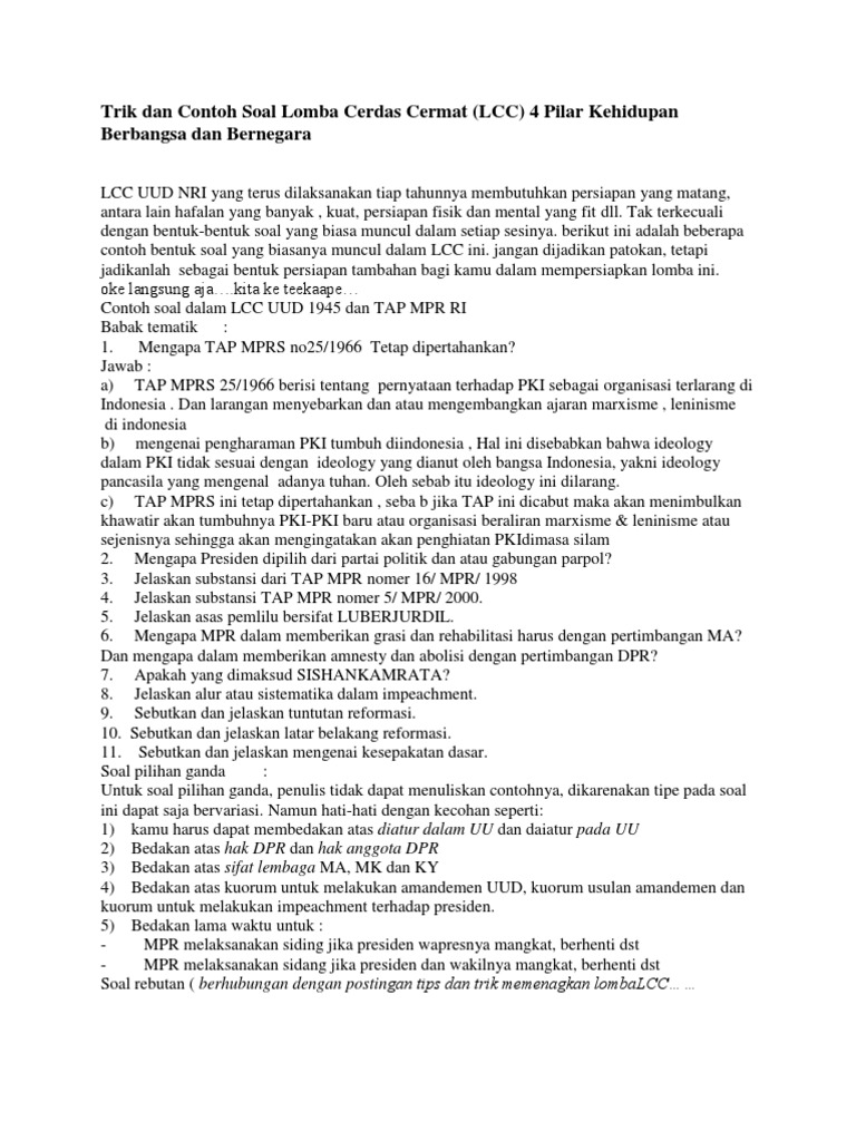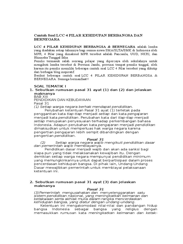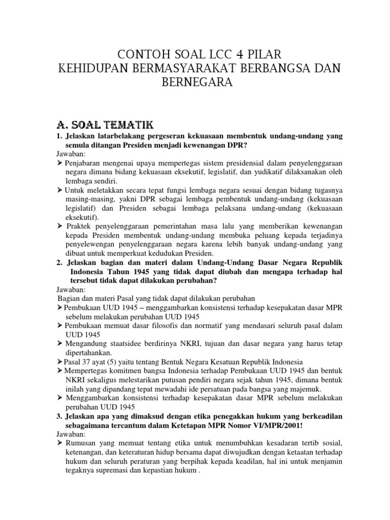 Contoh Soal Lcc 4 Pilar Kehidupan Berbangsa Dan Bernegara