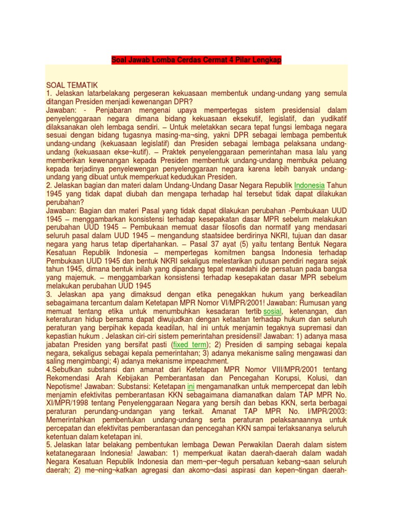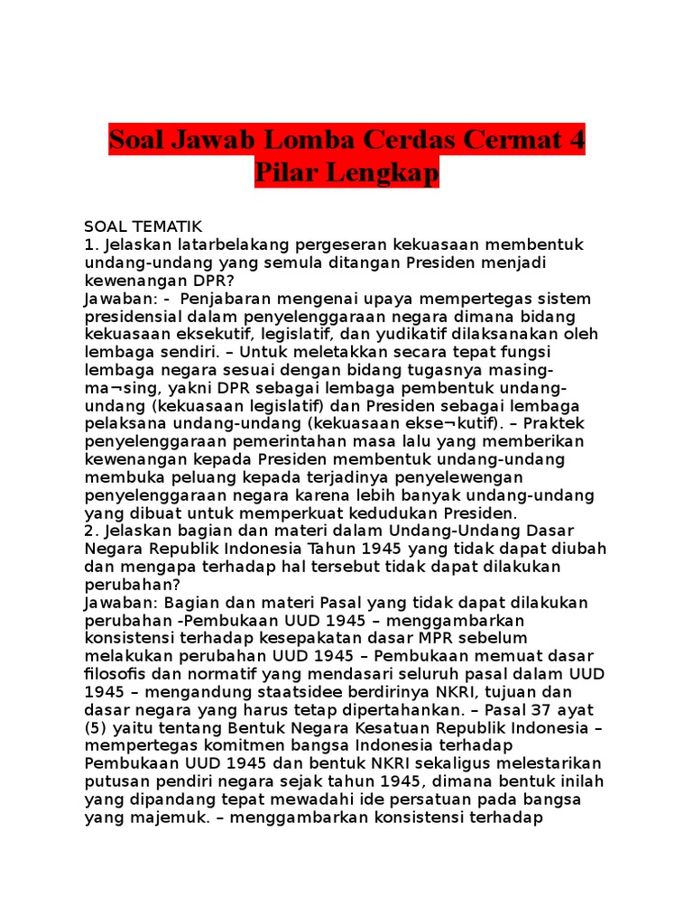 Contoh Soal Cerdas Cermat 4 Pilar Kehidupan Berbangsa Dan Bernegara - Dapatkan Contoh