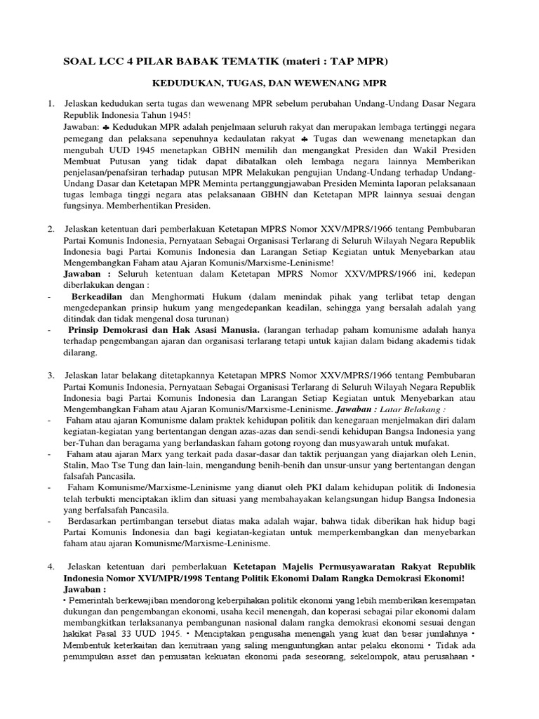 DOC) CONTOH SOAL LCC UUD 45 TAP MPR RI NKRI BHINEKA TUNGGAL IKA | Ni Gusti Agung Ayu Nyoman Sri Handayani - Academia.edu