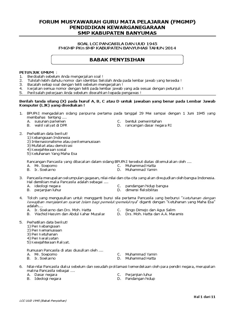 Soal Cerdas Cermat Pkn Smp Beserta Jawabannya - Guru Paud