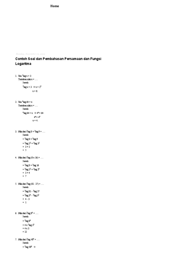 DOC) Contoh Soal dan Pembahasan Persamaan dan Fungsi Logaritma | azmha budhy - Academia.edu