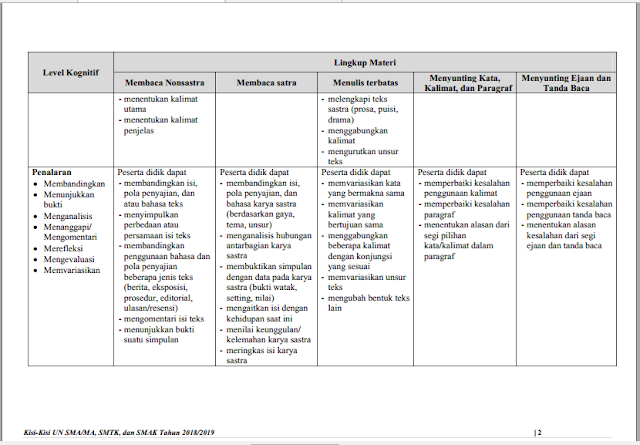 KISI-KISI SOAL UJI COBA UN 2019 SMA/MA MATA PELAJARAN BAHASA …